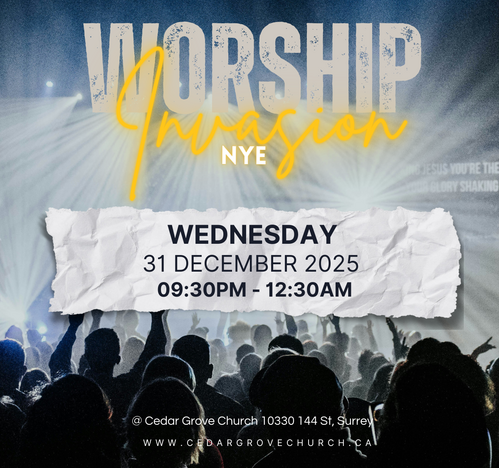 ? Worship Invasion 2025 – New Year's Eve at Cedar Grove Church ?? December 31st | 9:30 PM onward? Cedar Grove ChurchStep into the new year with hearts lifted and voices raised. Join us for Worship Invasion 2025, a powerful night of praise, prayer, and presence as we welcome 2026 in worship together.✨ Whether you're coming with family, friends, or on your own—this is a space to begin the year groun...